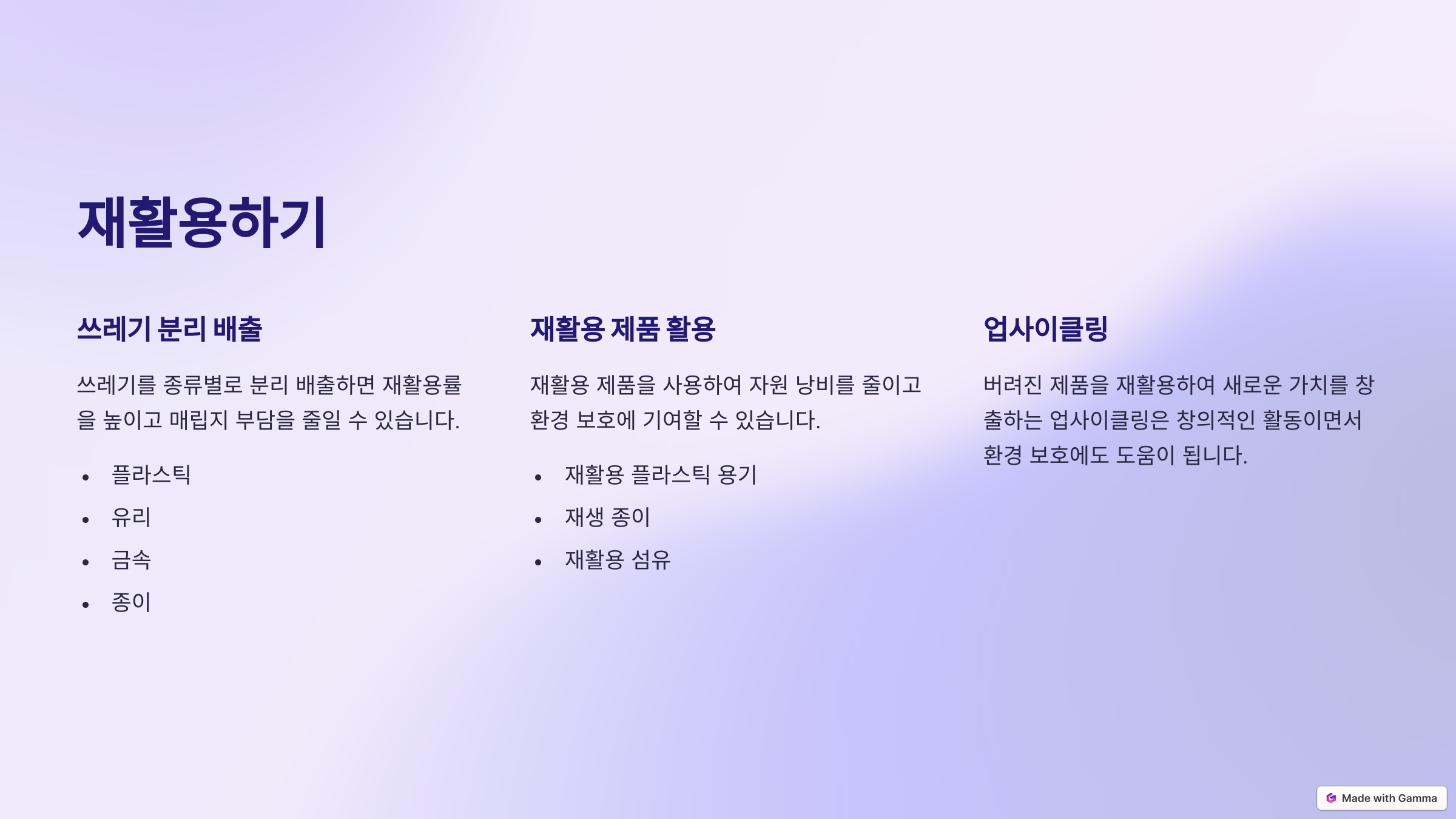 - Gamma가 자동으로 이 카드에 맞는 내용과 그림으로 프레젠테이션을 완성해줍니다.