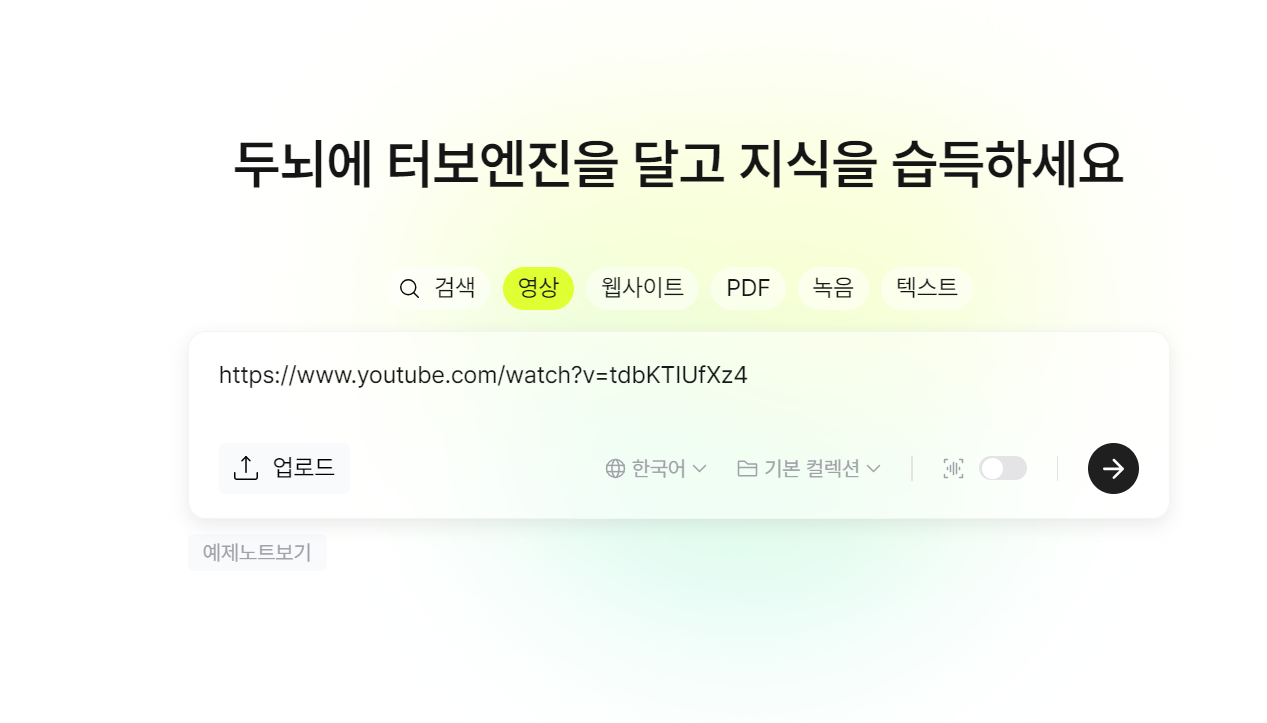 영상: 요약하고 싶은 YouTube 영상의 링크를 복사해서 입력합니다. (동영상 업로드도 가능)