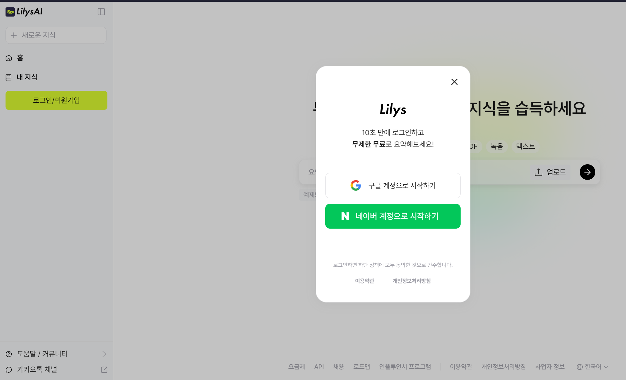 1. 우선 Lilys AI (https://lilys.ai/)에 접속합니다.